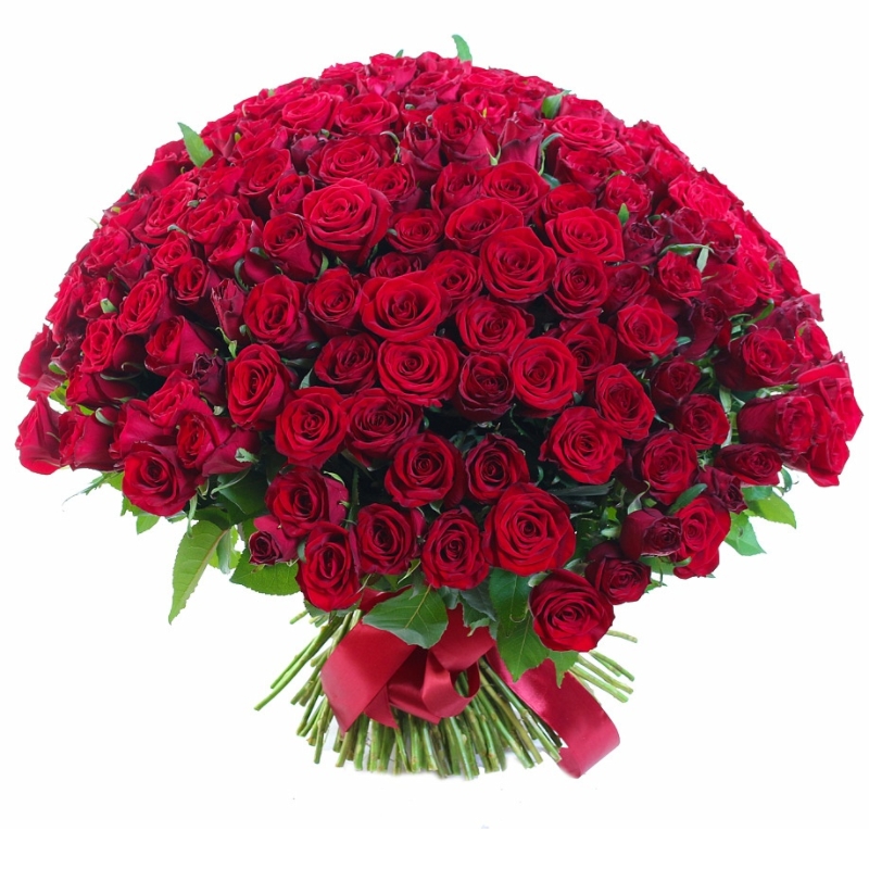 Букет из 201 красной розы с зеленью